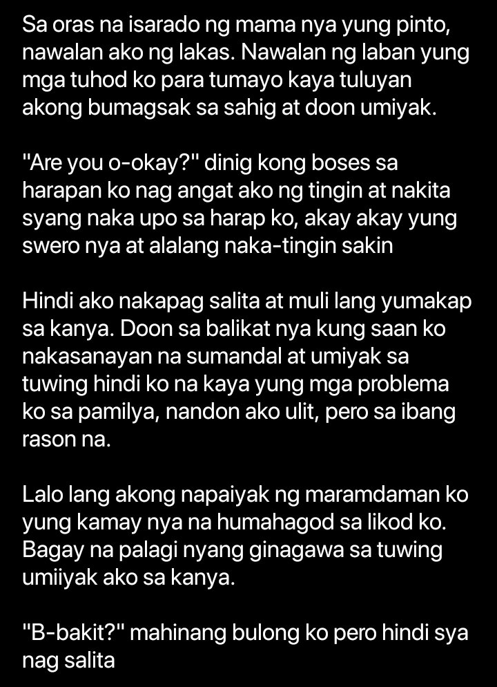 Ngayon lang ako nasaktan ng ganito kaya pakiusap lang lasingin niyo ako. Pero sa pagsulat pa rin ako nakakahanap ng kakampihehehe. Sabi mo noon ng nakita mo akong umiiyak Wag ka ng umiyak kalimutan mo na siya andito ako hindi ka na mag-iisa Di kita iiwanan andito na ako Sabi mo pa noon sa akin minsang nag-usap tayo tungkol sa trabaho mo kapag natapos na ang project namin dito baka sa Vietnam o Belgium ako mapunta isasama kita.