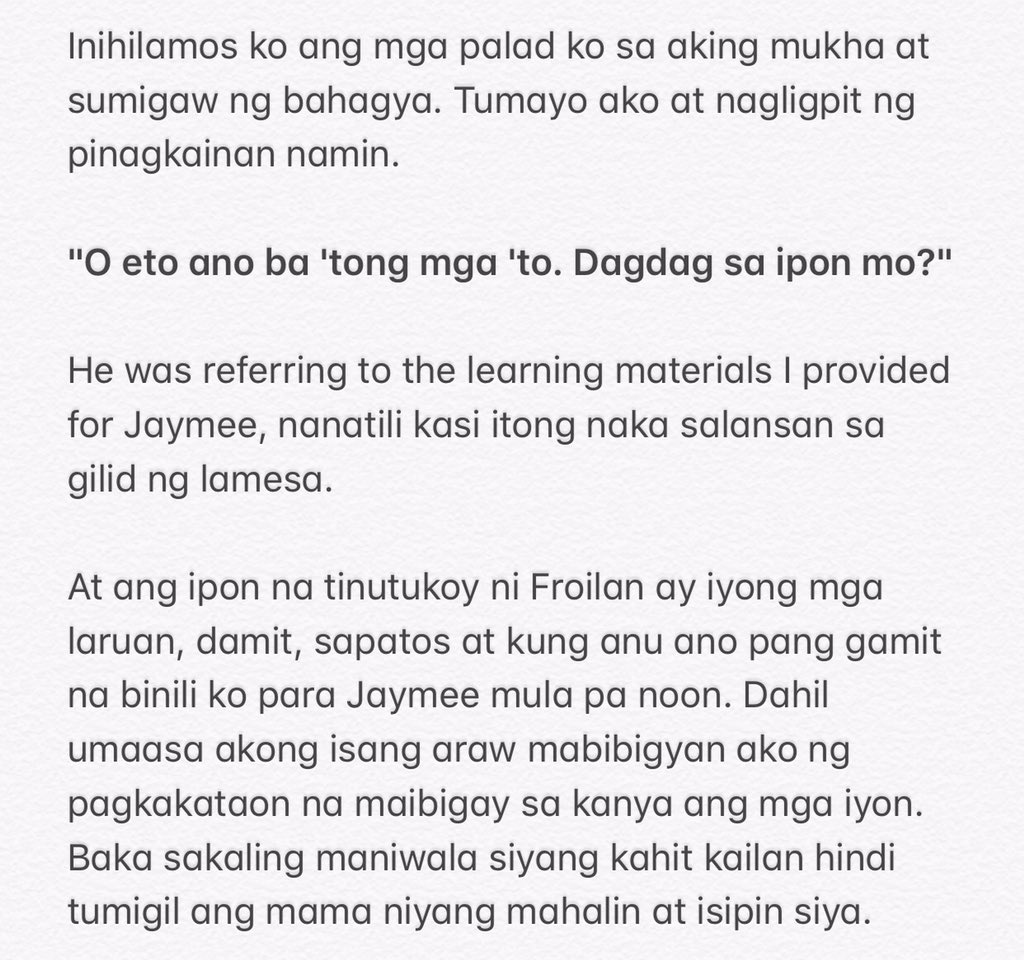 Na saktan ko ang isang tulad mo na labis na nagmamahal. Nooy di narinig pagsamo mo. That I have hurt someone like you.